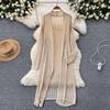 Spring/Summer Women's Long Cut-Out Knit Cardigan Loose Sun Protection Shawl Jacket Open Fron Knit Cardigan