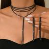 Full Diamond Multi-Layer Neck Chain Simple Long Fringed Necklace Earrings Collarbone Chain