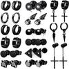 Unisexowy Zestaw Czarnych Kolczyków Wiszących ze Stali Nierdzewnej z Krzyżykami