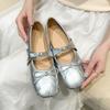 Srebrny temperament retro pojedyncze buty francuskie baletki damskie kokarda kwadratowy nosek lekkie usta miękkie płaskie buty Mary Jane damskie