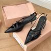 Temperament 2025 new baotou patent leather one-word buckle with cat heel sandals female sexy black silk pointed stiletto high heels