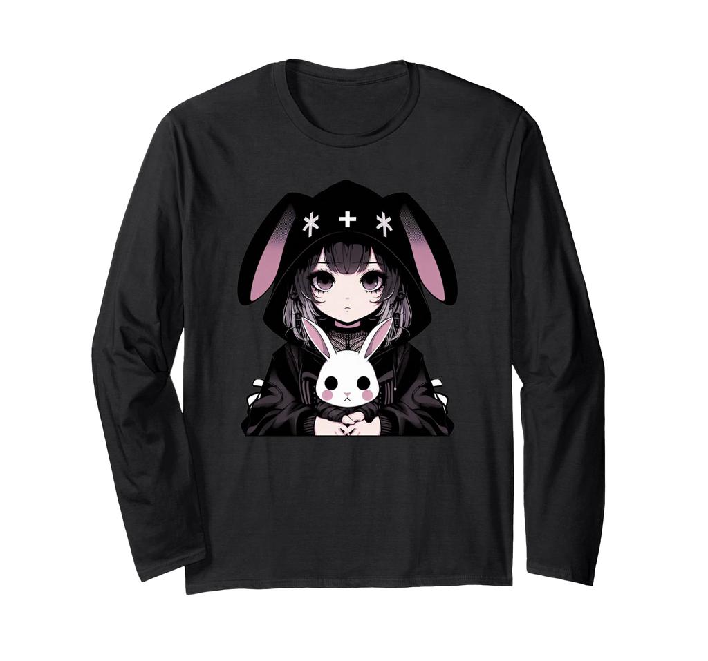 Gotycki Króliczek Dziewczyna Anime Kawaii Gotycki Przerażający Art Japońska Koszulka z Długim Rękawem