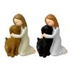 Statuetka Dziewczynki i Psa Żywica Wykwintna Statuetka Dziewczynki i Szczeniaka Ornament na Biurko do Sypialni Salonu