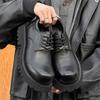 Niche design sense upturned head black derby shoes casual commuting leather shoes men's autumn and winter big head shoes men's shoes 98089-J