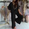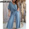 IHUASU Damski Zestaw Casualowy z Dekoltem V, Rękawami Nietoperzowymi i Luźnymi Spodniami z Szerokimi Nogawkami