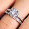 Huitan 2PC Bridal Ring with Round Brilliant Cubic Zircon Prong Setting Anniversary Engagement Wedding Rings for Women Size 5-12