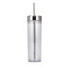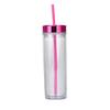 16Oz Double-Layer Plastic Straw Cup, Simple Skinny Straight Cup, Fixed Rose Gold Electroplated Lid Water Cup