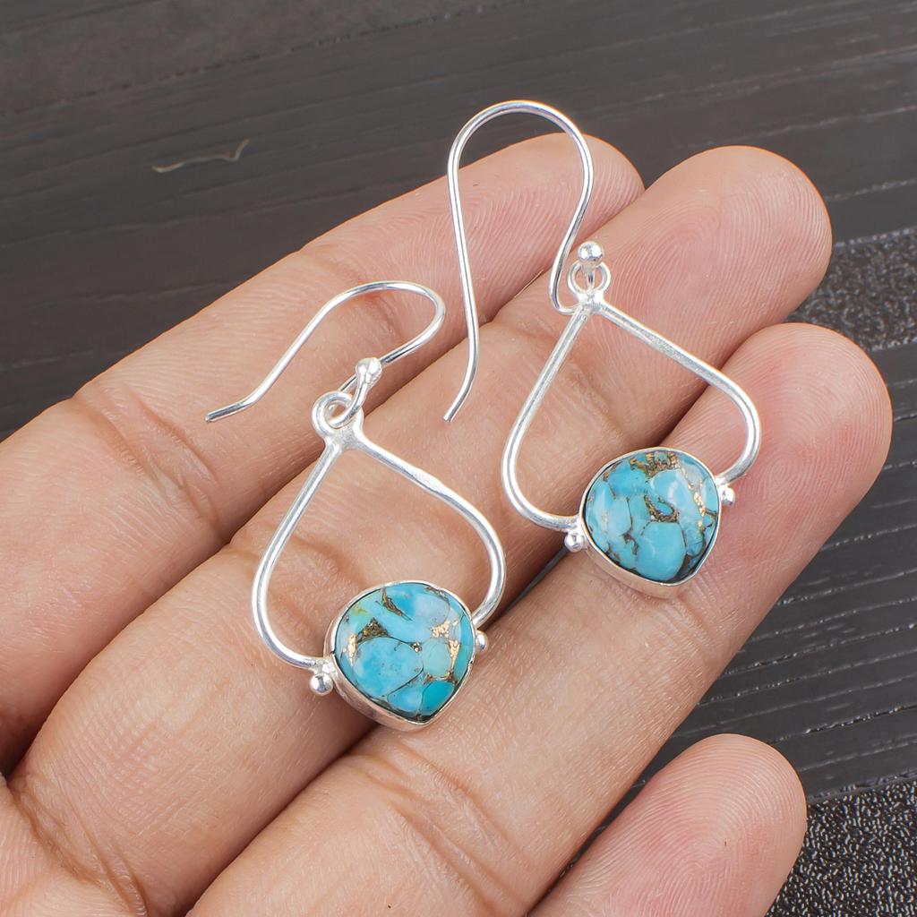 Kolczyki z niebieskiej miedzi i turkusu, ręcznie robione kolczyki z kamieni szlachetnych, kolczyki ze srebra próby 925, biżuteria antyczna, prezent zaręczynowy