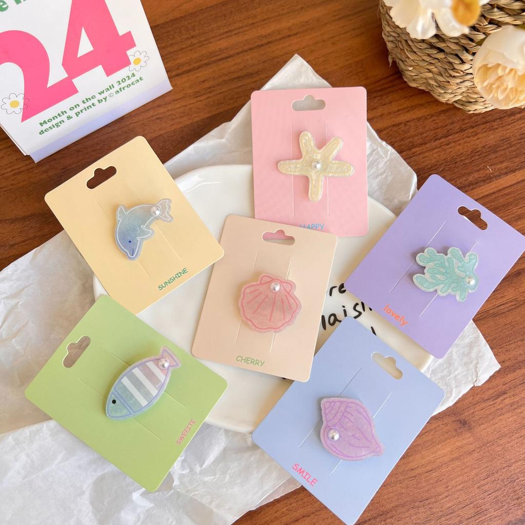 Uroczy Kolorowy Klips do Włosów ze Zwierzętami Moda Ryba Muszla Delfin Grzywka Klips Boczny Perła Małe Wsuwki do Włosów Kreskówkowe Spinki Codzienne Nakrycie Głowy