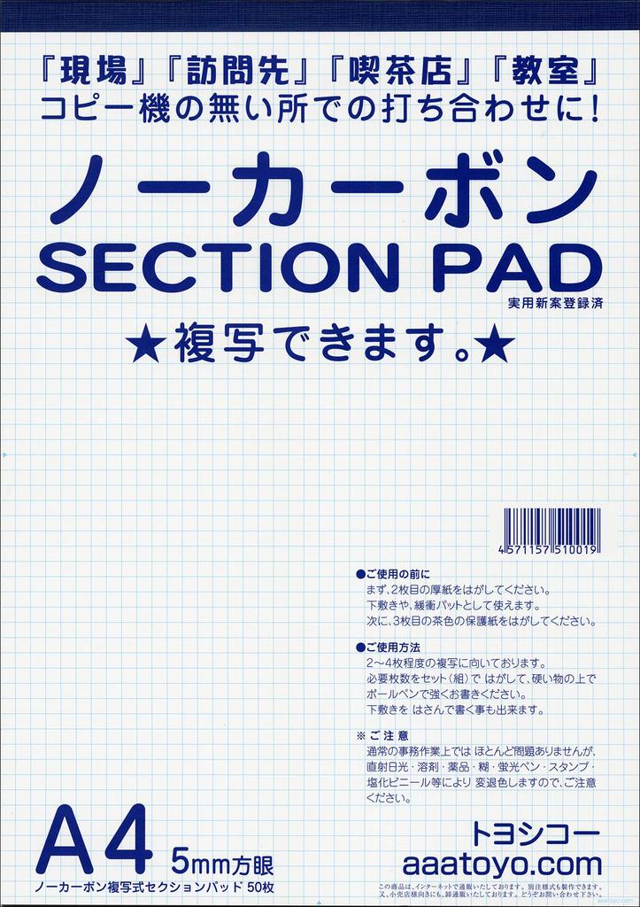 Blok do sekcji kopii bezkopiowych Toyoshiko Kratka 5mm (A4 3-pak)