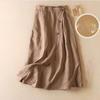 Spódnice z bawełny i lnu Damskie Szykowna Casualowa Średniej Długości Elegancka Wszechstronna Odzież do Dojazdów Spódnica z Dużym Rozkloszowaniem Oddychająca z Guzikiem
