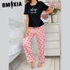 GMXIA Wiosna/Lato Damska Odzież Domowa z Nadrukiem Literowym Krótki Rękaw Długie Spodnie Damski Zestaw Piżamowy