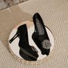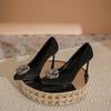 Black rhinestone high heels women's stilettos flower temperament pointed head shallow mouth single shoes waterproof table not tired feet women's shoes