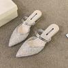 Klapki damskie w dużych rozmiarach 2025 lato nowa moda ażurowe wysoki obcas szpiczasty nosek torebka głowa dwa sposoby noszenia damskie fajne klapki