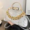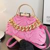 Damskie plisowane torby na ramię ze skóry PU, grube łańcuszki, luksusowe damskie torby, kopertówki nocne, złoto, róż, zieleń