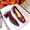 Single shoes women's medium heel patent leather burgundy new light mouth square head high heels gentle four-season shoes