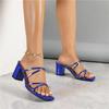 Women's sandals new square head cross shoes sexy thin strap gold edge thick heel sandals women