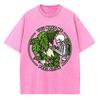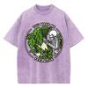 Letni damski T-shirt Czaszka z botanicznym nadrukiem Oversize Okrągły dekolt Prany Postarzany Krótki rękaw Y2K Casualowy top