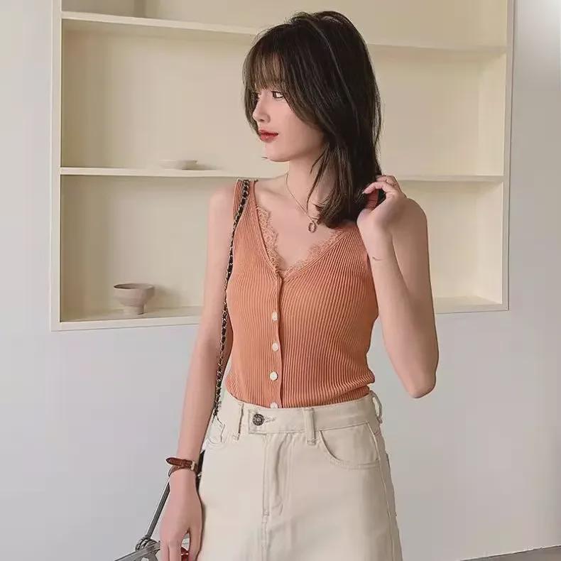 Lace Sleeveless Knit Vest for Women - Sexy, Slimming Summer Suspenders for Outerwear and Innerwear