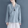 Damska haftowana bluzka z bawełny i lnu w chińskim stylu - skośne zapięcie na żabki, bluzka Hanfu z długim rękawem na jesień