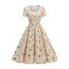 Letnia sukienka z kwadratowym dekoltem i nadrukiem w stylu vintage Hepburn