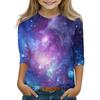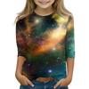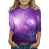 Koszulki z nadrukiem dla dziewczynek w wieku 5-16 lat, okrągły dekolt, rękawy 3/4, modne koszulki, stroje, koszulki