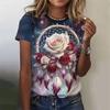 Moda 2025 Nowy Wzór Siatki Kwiatowej Damski T-shirt Ekskluzywny T-shirt z Nadrukiem 3D Lato Bardzo Duży Krótki Rękaw Okrągły Dekolt Top