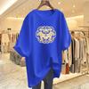 100Kg fat MM large size new Chinese style printed short-sleeved T-shirt women's summer new medium and long pure cotton top tide