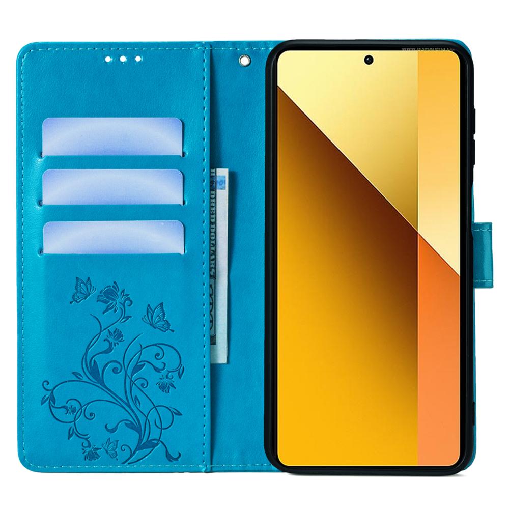 Dla Xiaomi Redmi Note 13 4G Odporny na zarysowania Pokrowiec na telefon Skórzane etui PU Wytłaczany Motyl Kwiatowy Stojak Powłoka na telefon