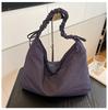 2025 new pleated drawstring shoulder strap bag lazy wind large capacity shoulder messenger bag solid color versatile tote bag