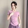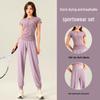 Women's Quick-Dry Yoga Set: Short Sleeve & Pants with Chest Pad for Summer 2025 Morning Runs