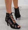 European and American new black net suede fashion cross strap sexy high heel large size women's shoes