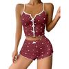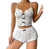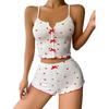 Komplet piżamowy z nadrukiem w serduszka i blokami kolorów, z rozcięciem z przodu