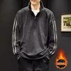 Half-zipper stand-up collar soft wrinkle men's street sports casual breathable loose fashion trend comfortable long-sleeved shirt