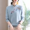 Wyszywany sweter z dzianiny welurowej dla kobiet - Jesień/Zima, Wszechstronny i ciepły dla kobiet w średnim wieku/starszych