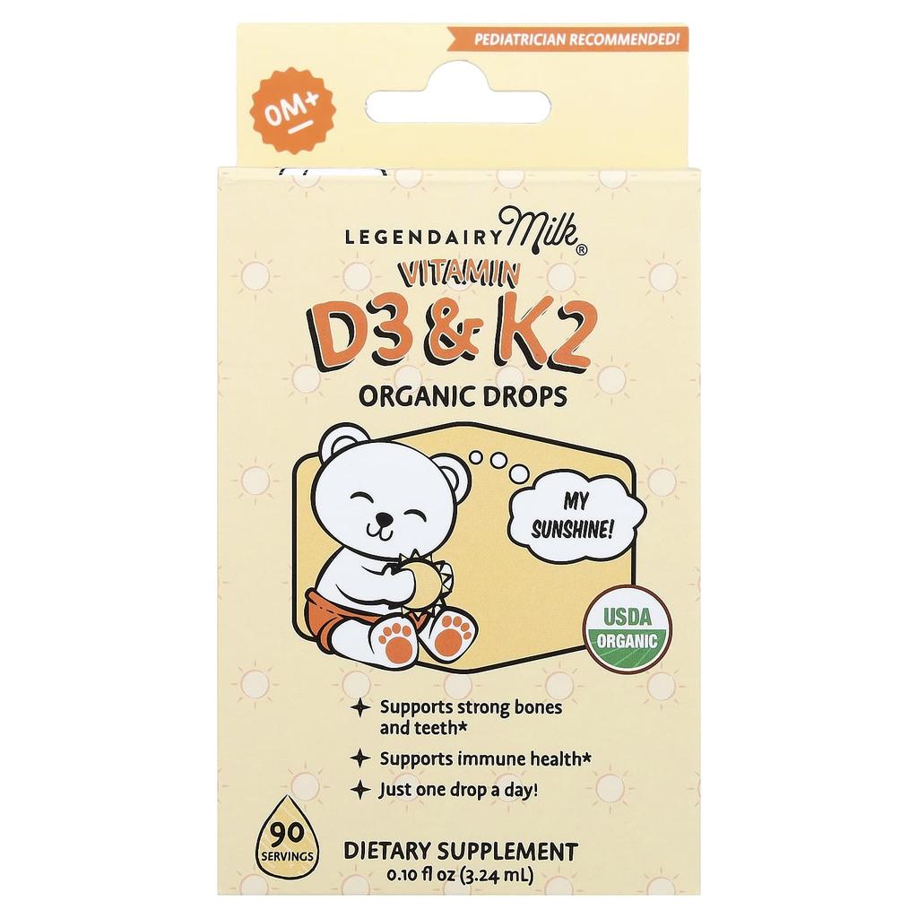Vitamin D3 & K2 Organic Drops, 0+ Months, 3.24 Ml (0.1 Fl Oz)