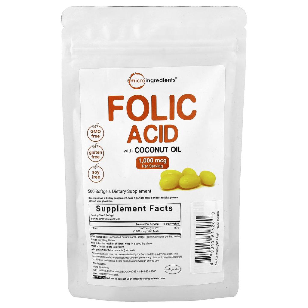Kwas foliowy, 1000 mcg, 500 kapsułek miękkich