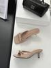 Spring and summer niche outer wear bow high-heeled open-toed slippers women's small sandals half slippers sandals