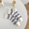 Female Spring and Summer Thin Style Trend All Kinds of Casual Broken Hole Thick Stripe Short Tube Socks