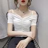Women's One-Shoulder Short-Sleeved Clavicle Camisole - High-Waisted Summer Top in White