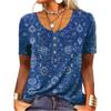 Elegancki T-shirt Damski Krótkorękaw Modny Styl Etniczny Luźny Retro Casual Koszula na Guziki Nadruk Kwiatowy 3D Luźny Letni Top