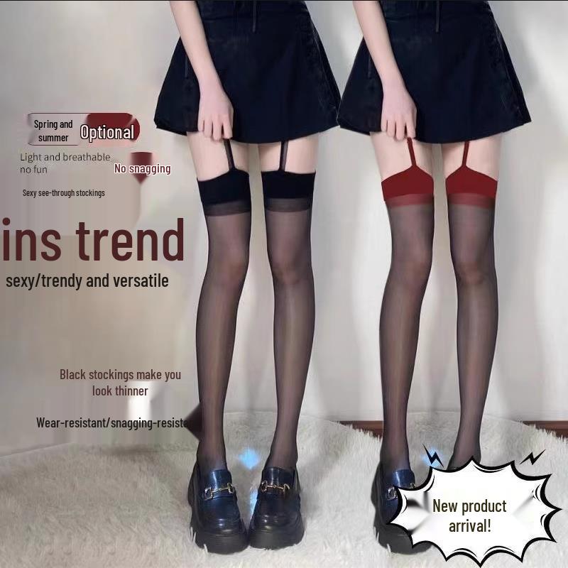 Women's Sexy Black Lace Suspender Thigh-High Stockings with Color Block Cutout