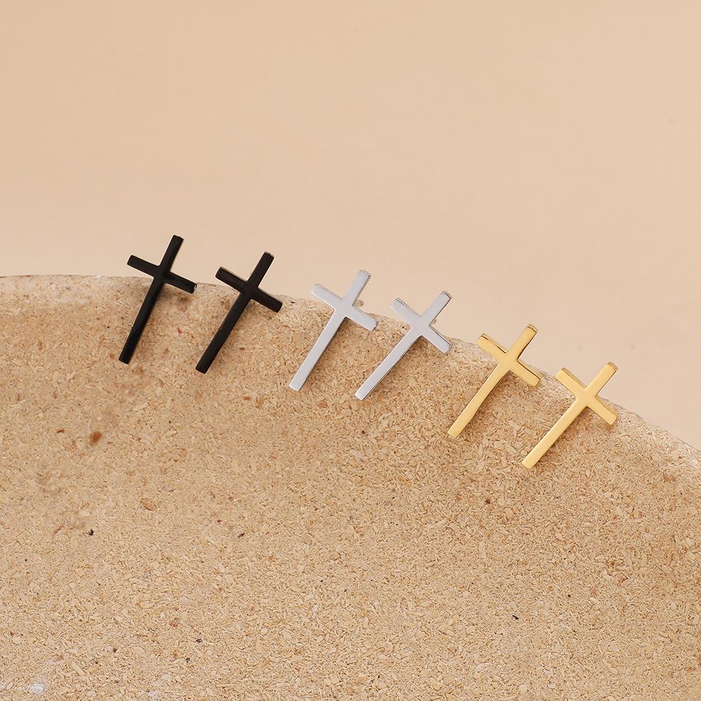Stainless Steel Cross Stud Earrings - Fashion Jewelry