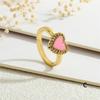 Pierścionki damskie z wyższej półki europejskie i amerykańskie: Miedź 18K, Cyrkonie Micro-Pave, Brzoskwiniowe Serce w Kształcie Serca, Kolorowa Emalia, Regulowany.
