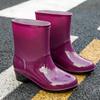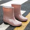 Średnie kalosze damskie modne aksamitna bawełniana wyściółka wyjmowane antypoślizgowe i odporne na zużycie wodoodporne buty do wody z PVC dla dorosłych buty na deszcz