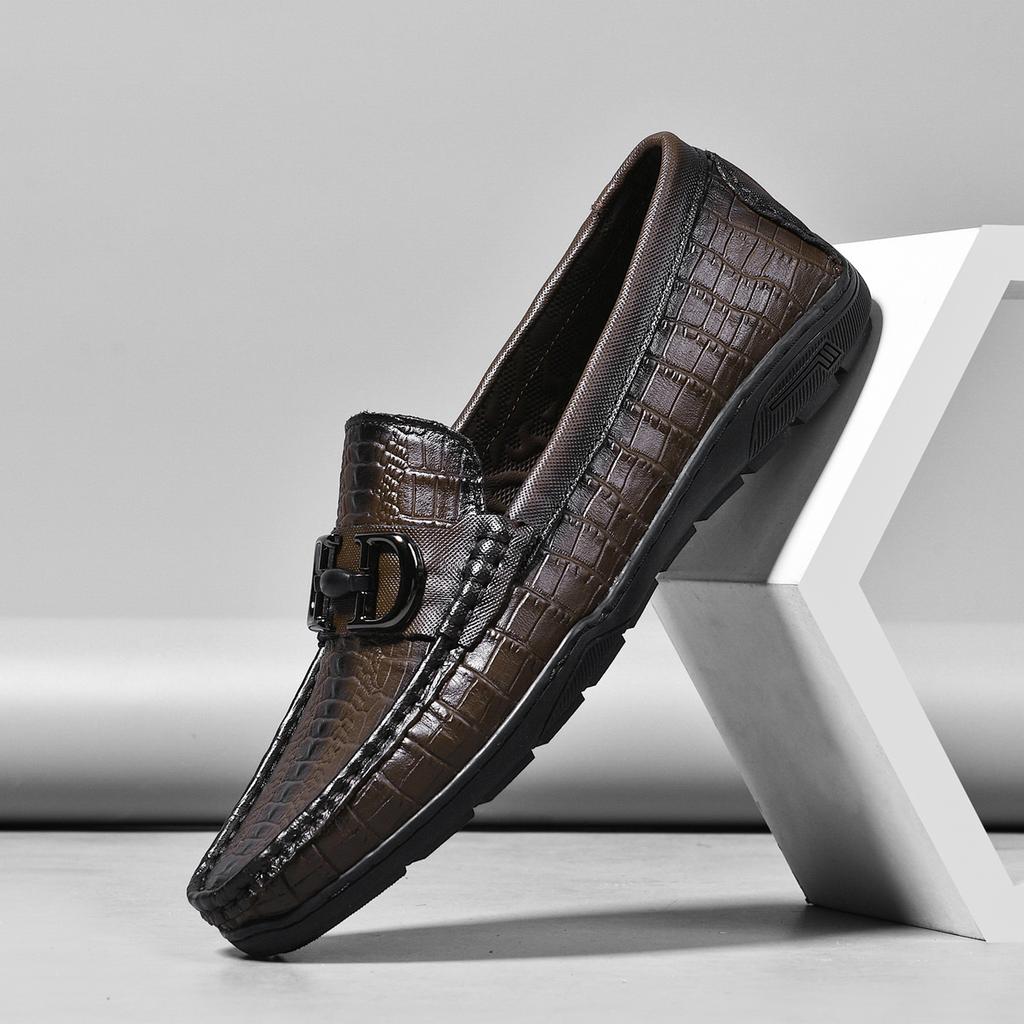 High-end crocodile pattern leather popular Doudou shoes lazy driving shoes British casual men's leather shoes driving shoes