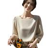 Satynowy T-shirt z okrągłym dekoltem i rękawami do połowy ramienia Letnia modna koszula z rękawami pięć ósmych Francuska retro koszula bazowa z rękawami lampionowymi