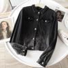Damskie Szorty Kurtka Dżinsowa Moda Casual Płaszcz Czarny Klapy Jednorzędowa Długi Rękaw Kurtka