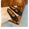 Round head silver pleated one-word buckle strap flat Mary Jane single shoes ballet shoes