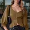 ZANZEA Damska codzienna elegancka bluzka z dekoltem w serce i rękawem 3/4
